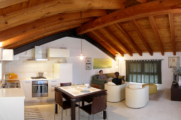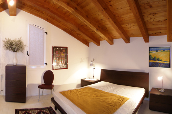 edificato con materiali bio-ecologici ed interamente mansardato con travature in larice a vista, è composto da cucina - soggiorno, camera matrimoniale, bagno. Si trova al primo piano ed è completo di tutti gli arredi ed elettrodomestici compreso impianto di climatizzazione. Ideale per brevi periodi.